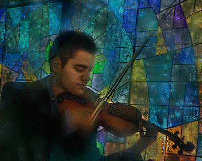 This morning I went to Saint Bernard Catholic Church in Anna Maria, Florida, to photograph their First Communion. A young guest violinist was rehearsing a wonderful piece of music with the church organist/ music director. It was obvious the man had true musical talent, and a real passion in his playing. After the rehearsal, he walked to a back room to warm up a bit more. I saw the stained glass behind him and had to capture that moment. I quietly went in and asked if I could take a few shots. He agreed graciously and continued playing. Although I originally planned to make it a silhouette, I changed my mind once I looked at the images. The passion and love for music was so prevalent in his face that I had to bring that out. I am sending him these images. I love my job!